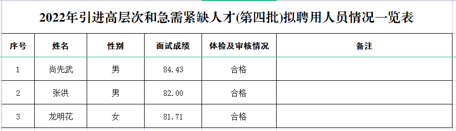 附件:2022年引進(jìn)高層次和急需緊缺人才(第四批)擬聘用人員情況一覽表