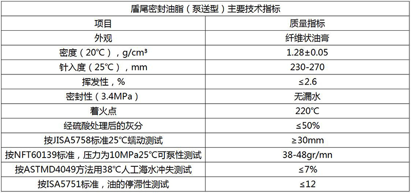 盾尾密封油脂(泵送型)產(chǎn)品性能: